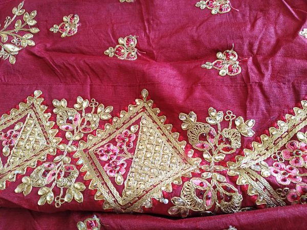 Color family : Lehnga and Choli -Golden zari ,Pink and red color silk thread work on maroon color